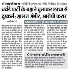 घटना की शुरुआत 9 अप्रैल की शाम 5 बजे हुई जब पीड़िता अपनी सहेली के लालपुर स्थित घर पहुंची। पार्टी में कुल 5 लोग शामिल थे, जिनमें सहेली के अलावा तीन अन्य लड़के भी थे। रात 8 बजे केक काटने के बाद माहौल सामान्य था लेकिन डेंटिस्ट को इस बात का अंदाजा नहीं था कि उसके साथ आने वाले घंटों में अनहोनी होने वाला है। पीड़िता की फ्रेंड ही उसे झूठ बोलकर बर्थडे पार्टी के बहाने बुलाई।